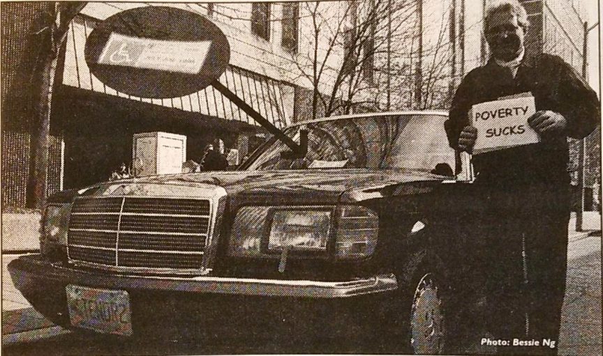 “Here’s this symbol of the establishment, littered with huge disabled signs all over, parked in the middle of our protest,” said Steele.