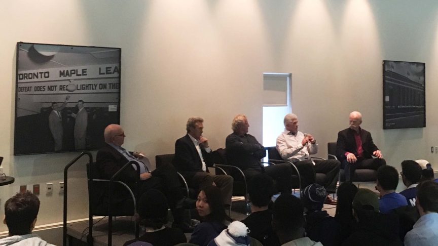 Sittler, McDonald, Henderson and Vaive were all members of a panel at the Mattamy Athletic Centre on Thursday, addressing a sports marketing class from the Ted Rogers School of Management.