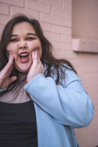 It’s important to have plus-sized representation because when you see yourself represented in the world, you’re validated—it proves that you exist. It’s also important, however, to represent the whole spectrum of fat people. Plus-sized models are usually white and usually women—which is dishonest. It doesn’t paint an accurate picture of the plus-sized community and all of the intersections that come with being fat, even if they aren’t inherently physical traits. The models you’ll see in this essay, that we don’t often see, are fat and trans, fat and queer, fat and people of colour.