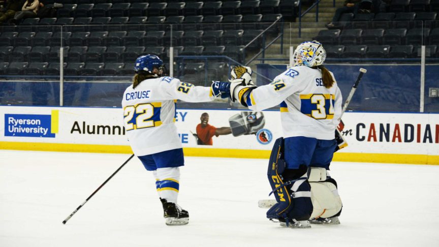 Ryerson women’s hockey forward Erika Crouse—who is now second in points in the Ontario University Athletics—led the Rams to their fifth consecutive win over the Laurier Golden Hawks 3-0, on Nov. 21 at the Mattamy Athletic Centre.