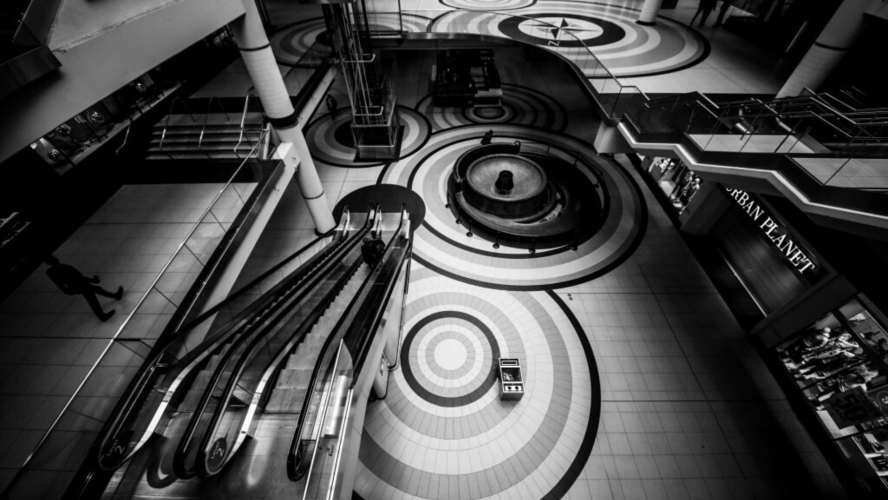 Not even the fountain continues to flow water at the CF Eaton Centre. PHOTO: Brent Smyth