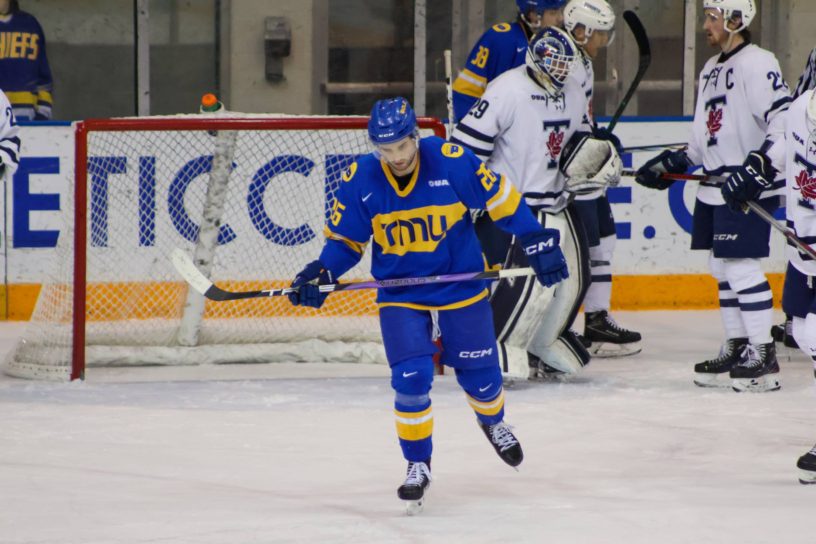 The Bold attempted to match the Varsity Blues’ physicality early in the second, but the TMU bench was feeling the force and injuries ramped up. After taking a stick to the torso, fourth-year forward Jackson Doherty left the ice in pain, walked back to the dressing room and didn’t return.