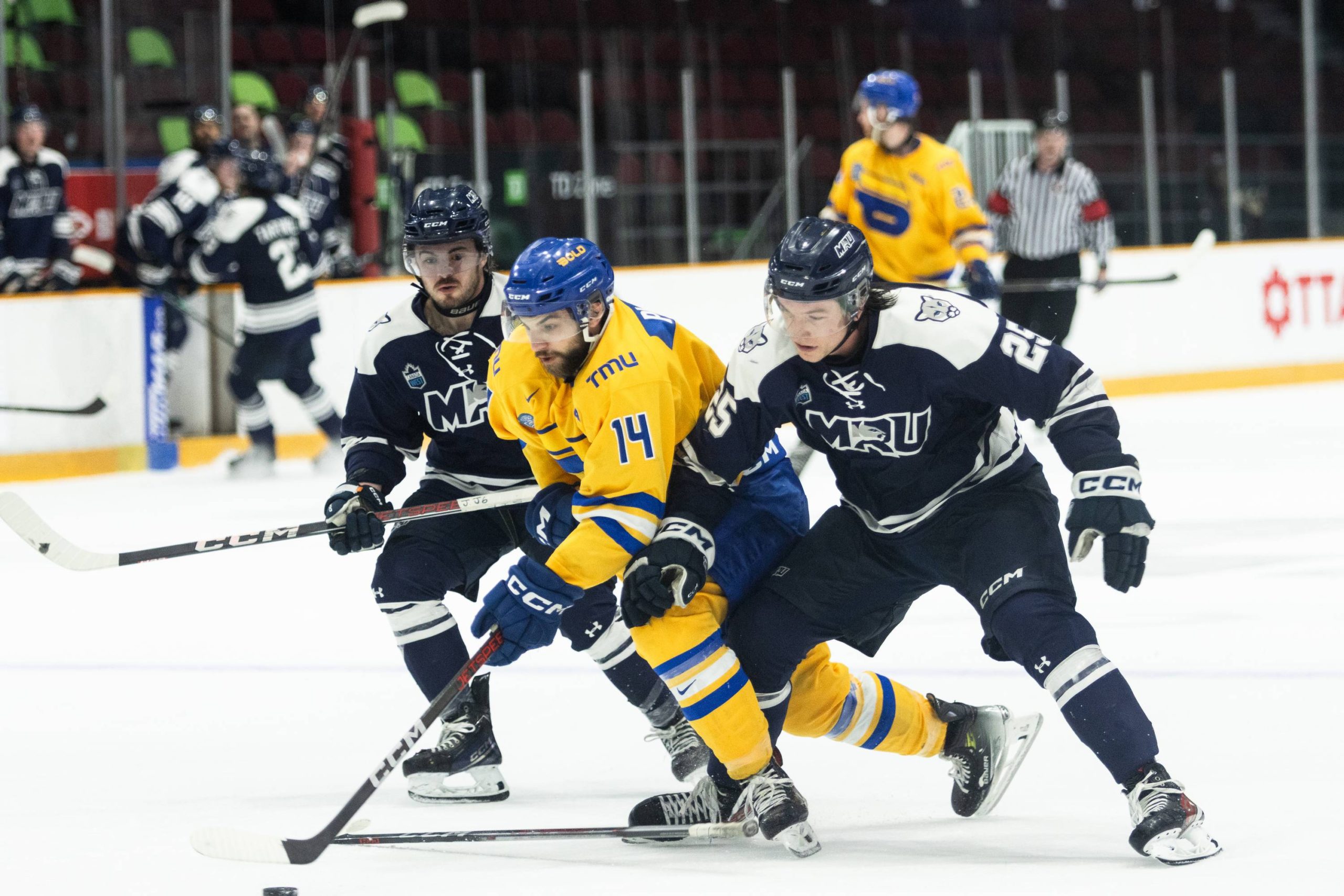 As the TMU bench emptied in celebration, the longest U Sports men’s hockey game in history finally came to an end—a testament to the resilience and determination of both teams.