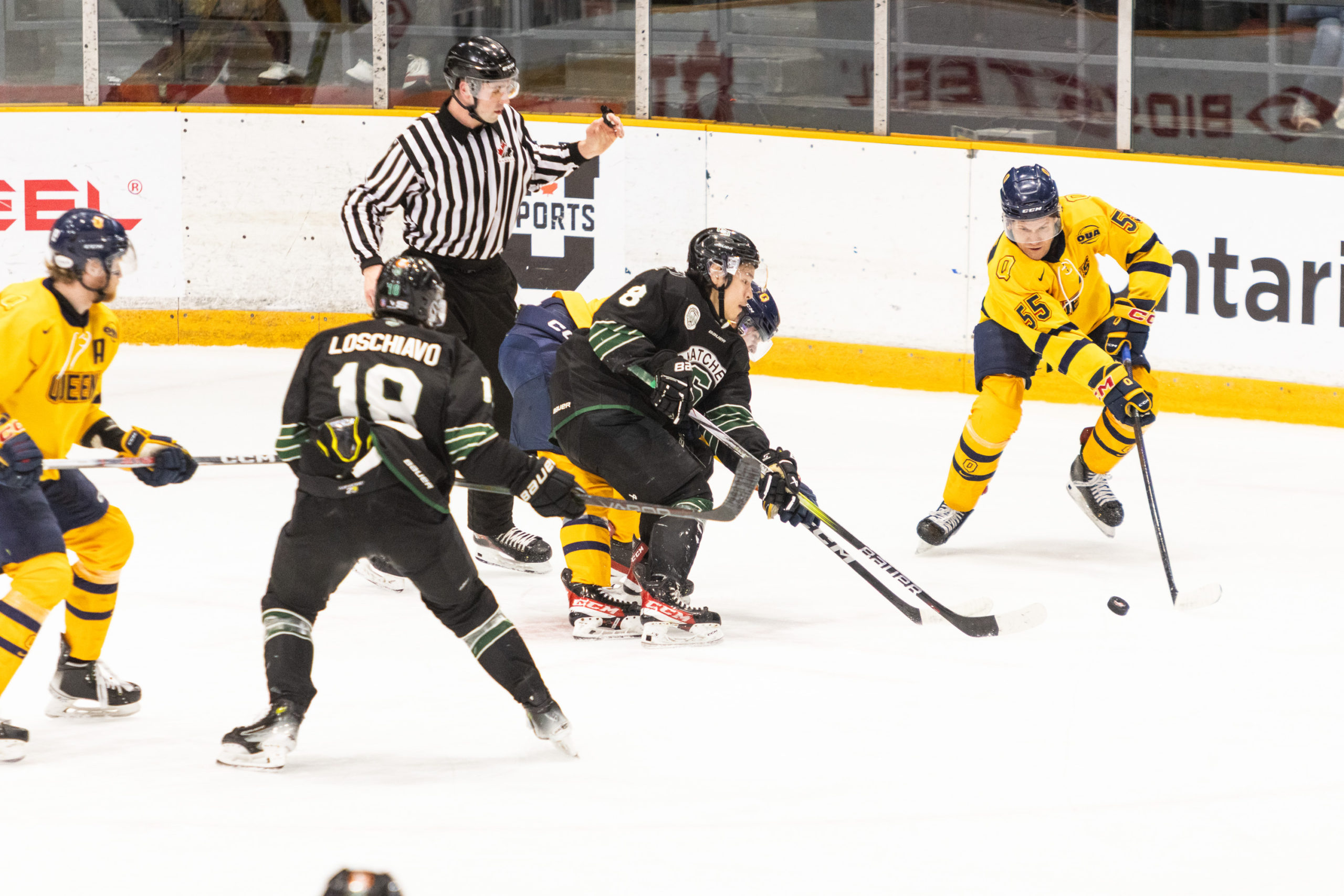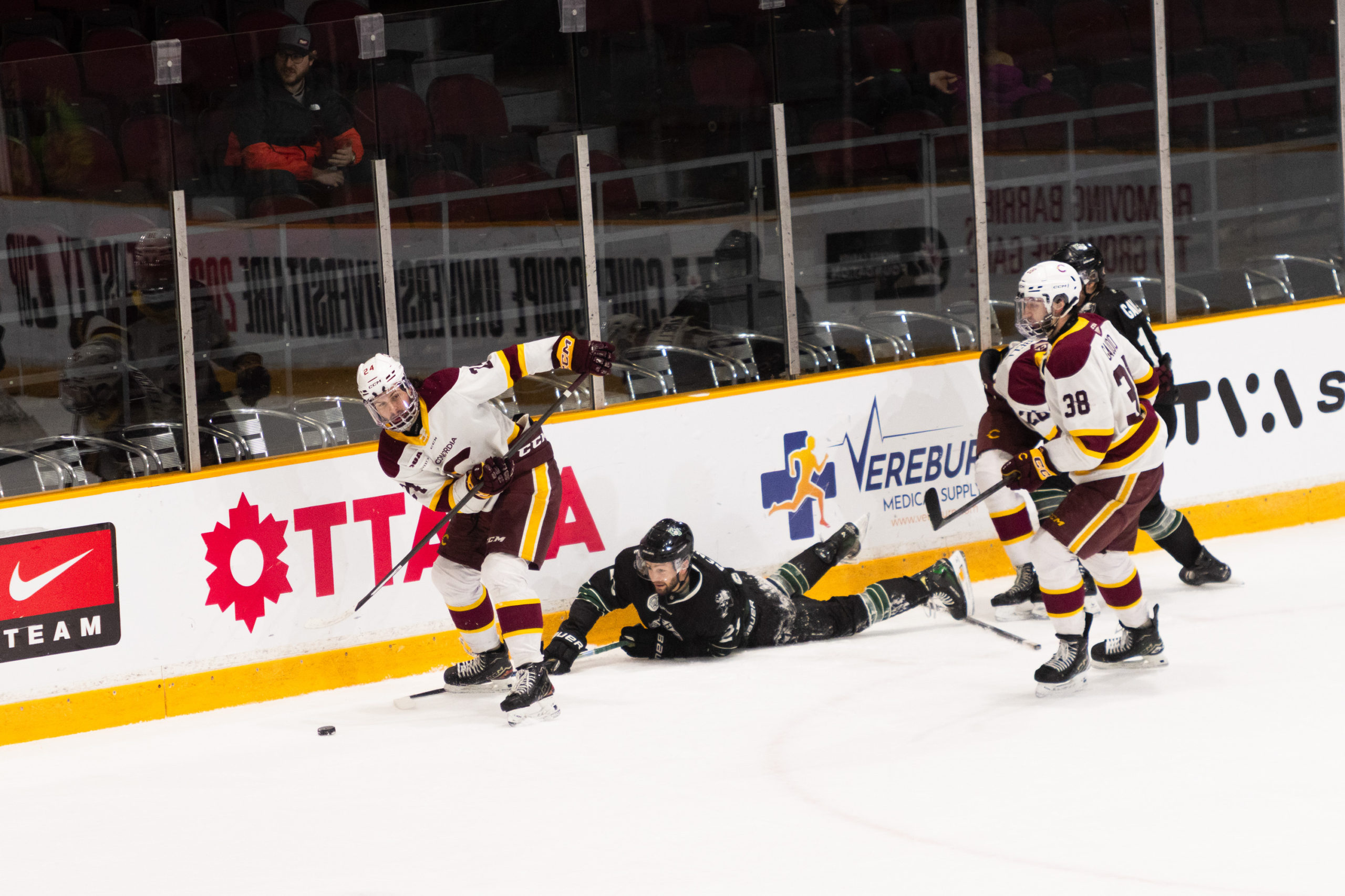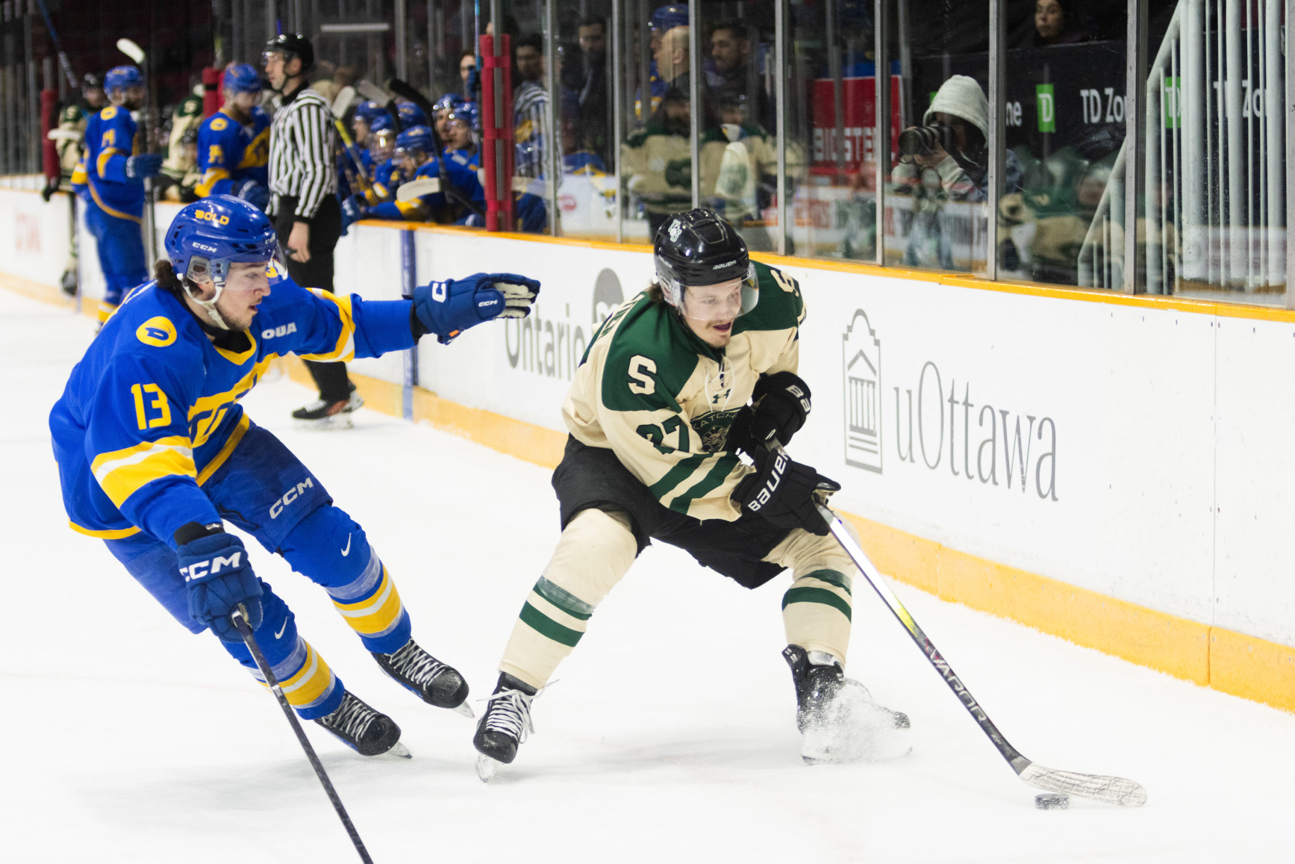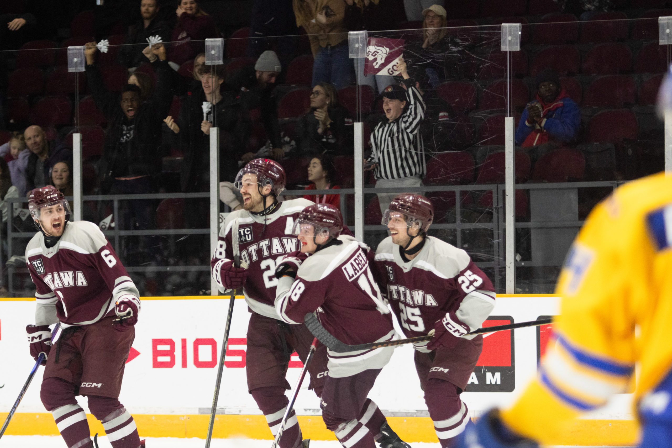 Ottawa stormed out with a 3-0 lead through the first 40 minutes off the sticks of second-year forward Vincent Labelle, fourth-year forward Bradley Chenier and second-year forward Luka Verreault.