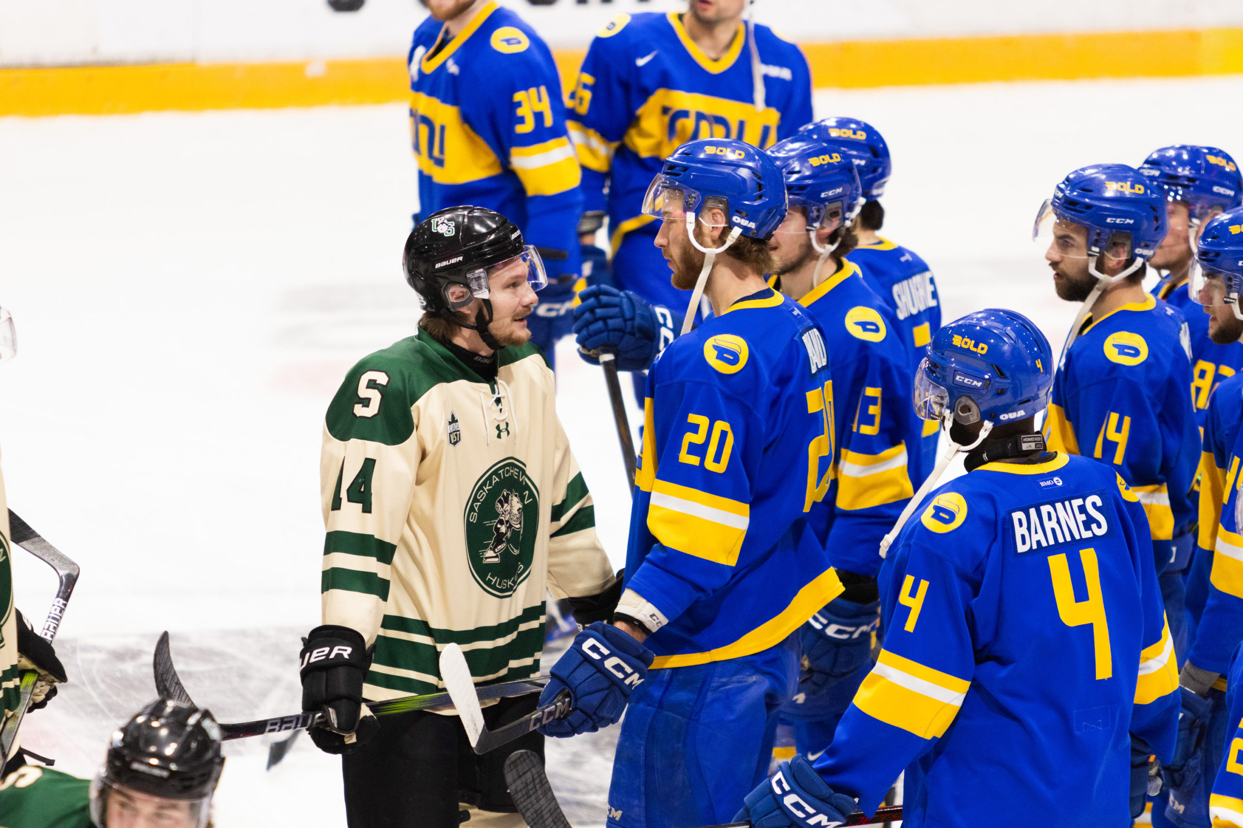 In the last quarterfinals matchup, the Saskatchewan Huskies won 4-2 over the Queen’s Gaels. Fourth-year Huskies forward Dawson Holt netted two goals, while fourth-year goaltender Roddy Ross made 38 saves, backstopping them to victory despite being outshot 40-23.
