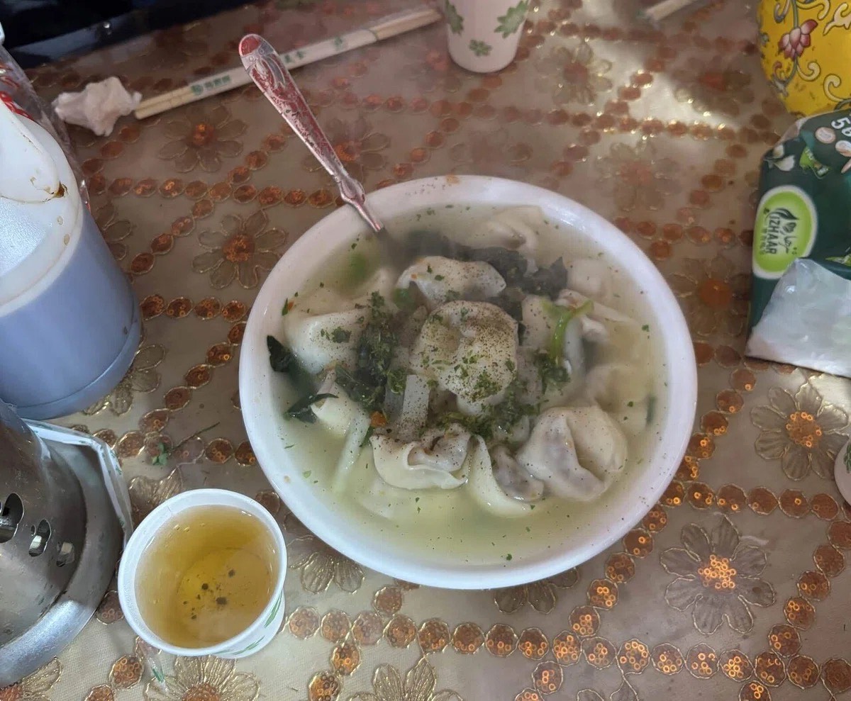 We came across a vibrant market, around 25 minutes walking-distance from Kashgar Old Town. There were a bunch of street stalls selling snacks, nuts, fruits, etc. The place we found was already full of people, and the air smelled of broth and boiled chives. At the entrance, people were coming and going like water. Ordering seemed like a challenge. All we had were translating apps, big smiles, loud voices and enormous appetites.