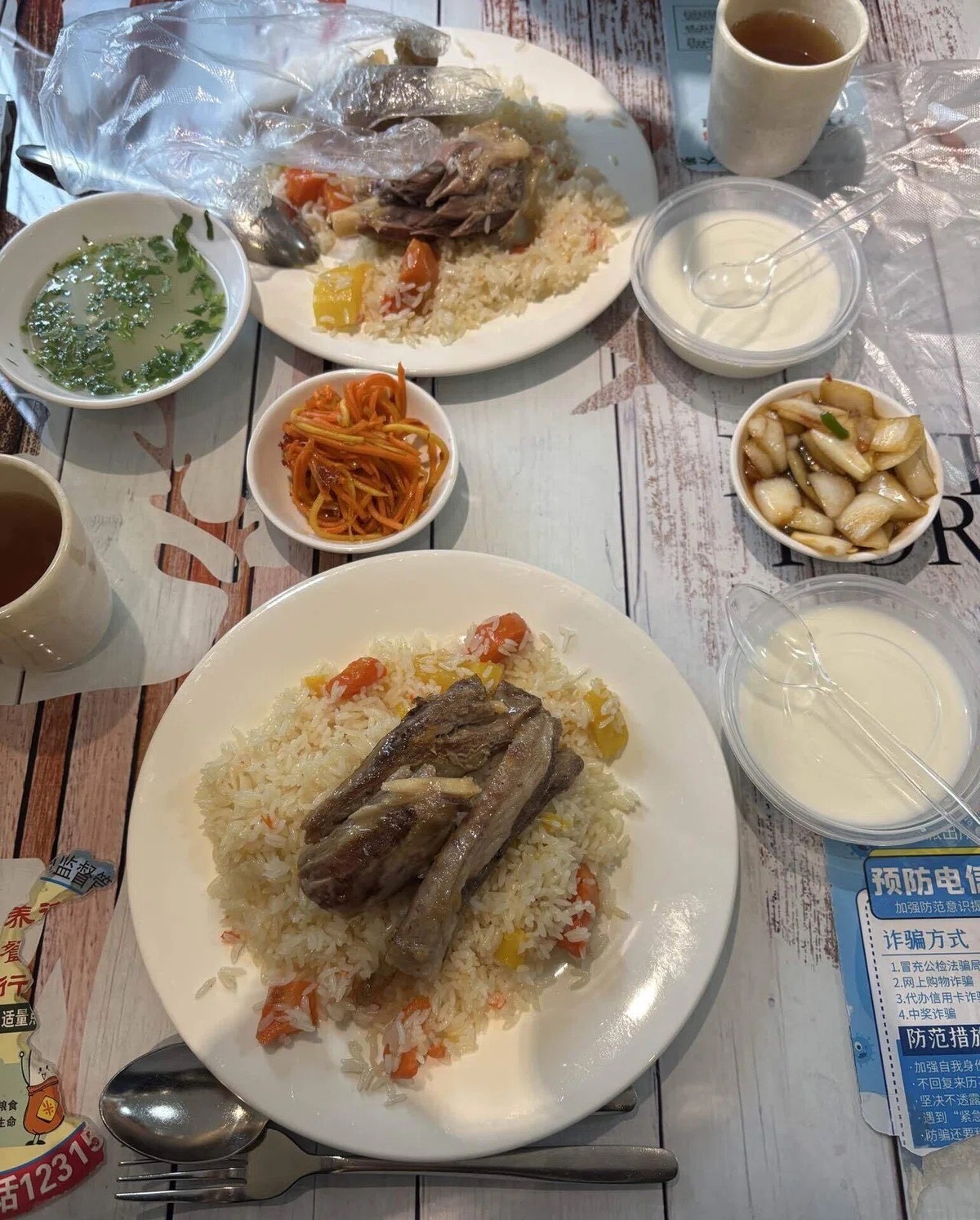 On our last day in Kashgar, we wanted to choose something special. The place we found on 百度地图 (Baidu maps), a local food review platform, was highly rated and known for its lamb dishes. A kind-looking middle-aged man who seemed to be the owner greeted us with a big smile. We didn’t have a single glimpse of the menu—instead, the owner immediately handed us a bite-sized piece of meat and bread, saying that was his recommendation. Of course, we ended up ordering it.