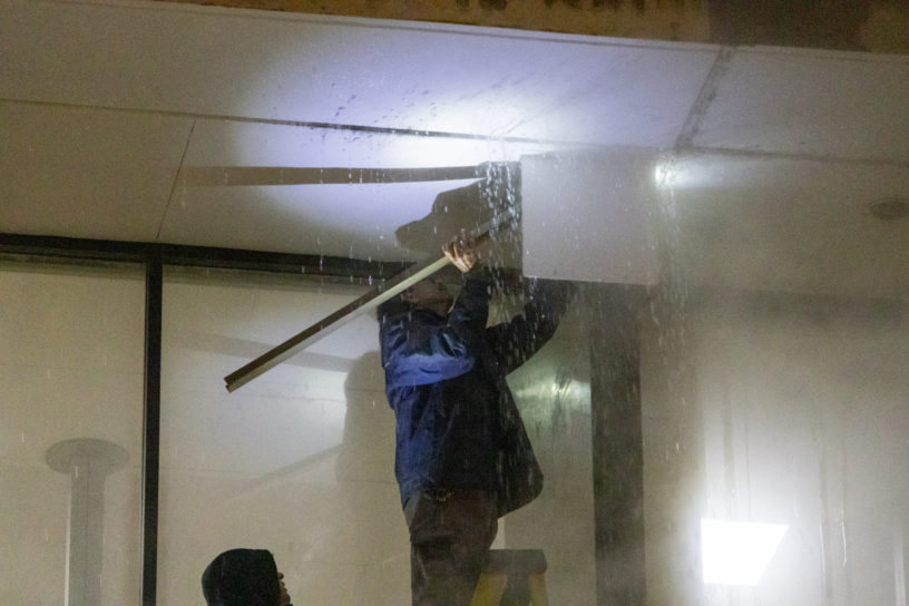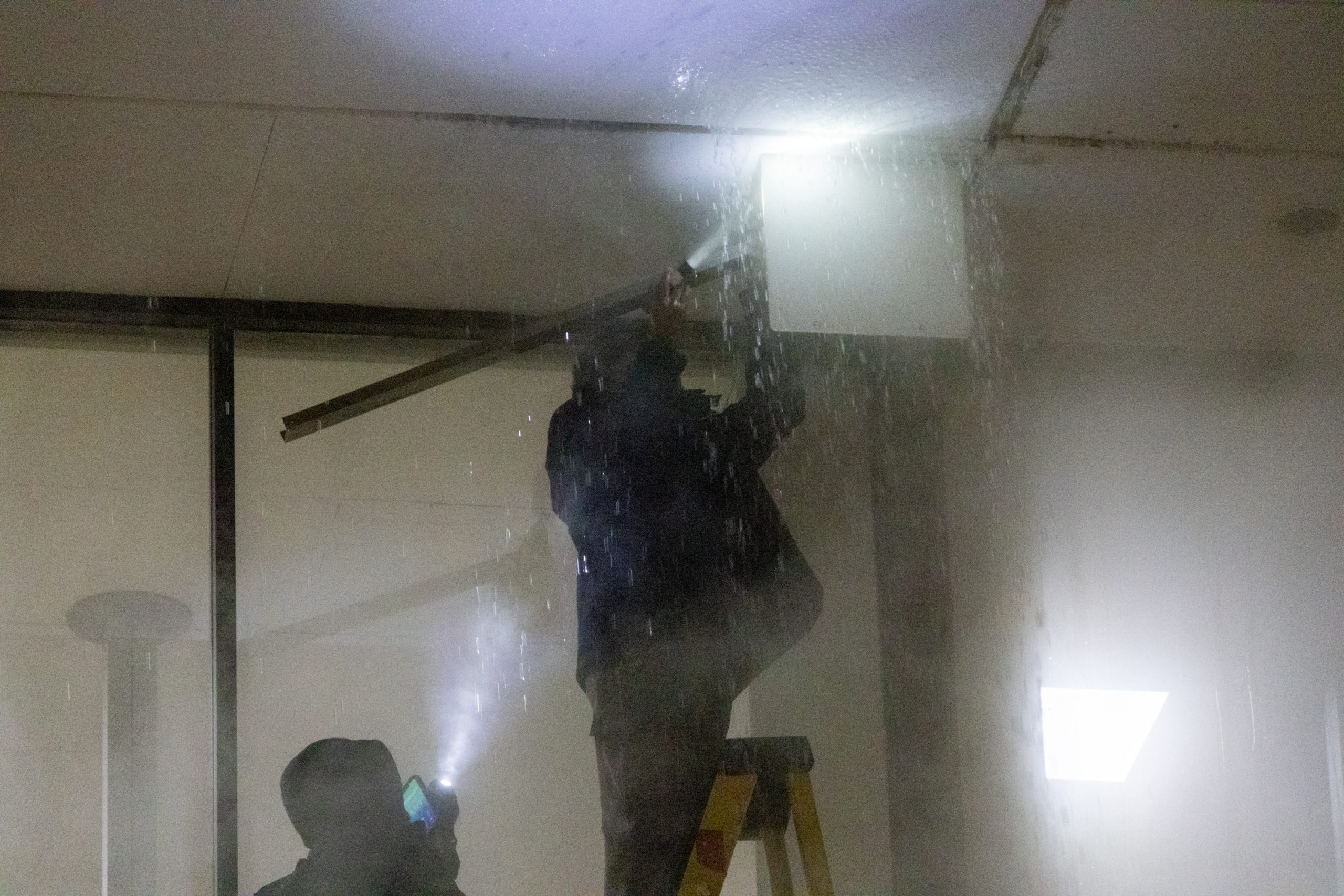 A student told The Eyeopener  their class was first interrupted at around 6:10 p.m. when inspectors came in looking for a leak. At around 6:30 p.m. the fire alarms went off as water began to pour from the third floor to the second.