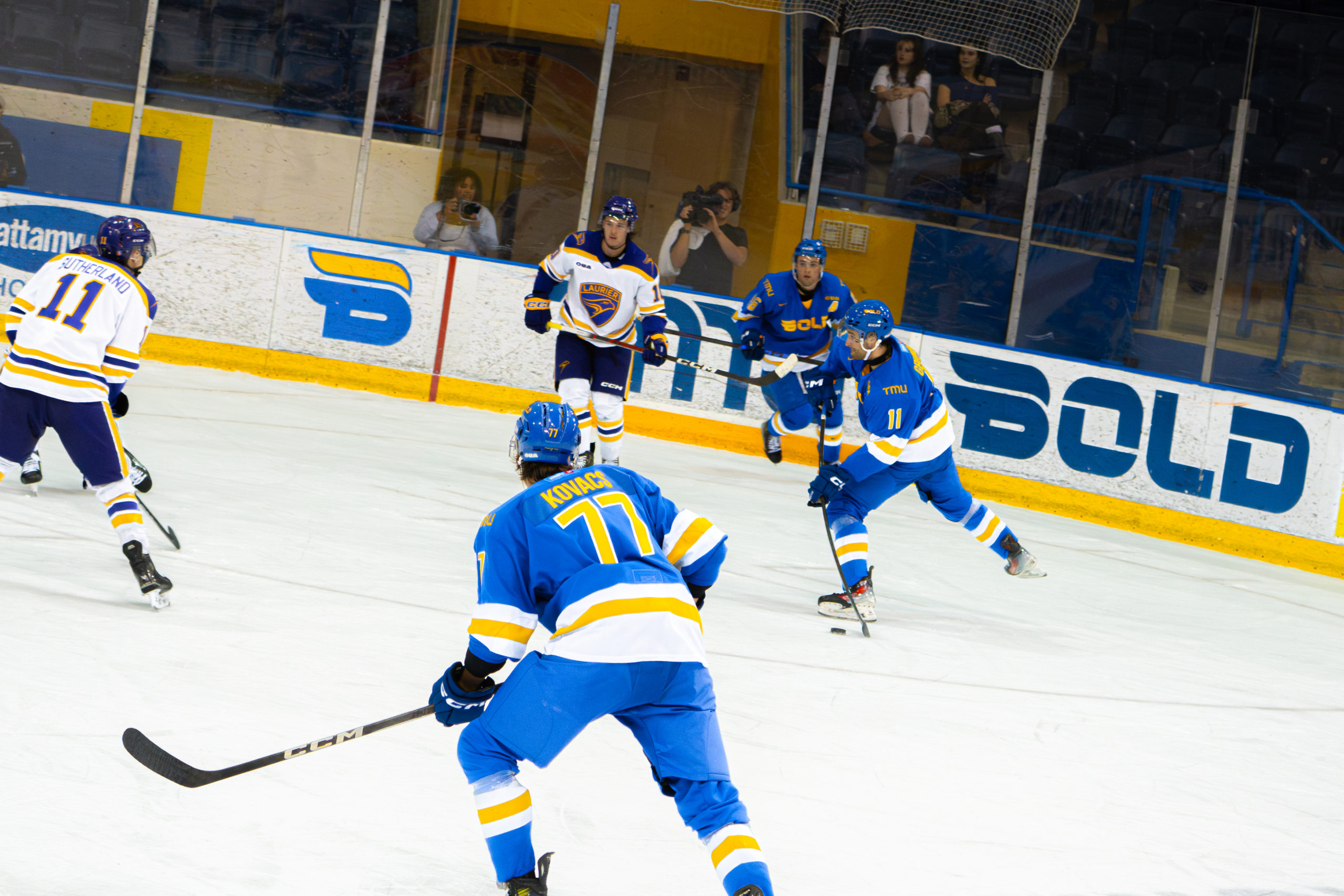 The TMU Bold men’s hockey team won their homecoming game 3-1 against their city rivals the University of Toronto Varsity Blues in September 2025—their first matchup since eliminating the Blues’ playoff run during the season before.